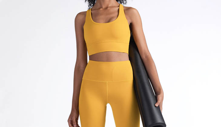 La composición del material del conjunto de yoga sin costuras incluye 80% n ylon y 20% elastano. Alimentado por nuestra tela NULS, es liviano, transpirable, absorbe la humedad, etc. El sostén de entrenamiento de alto impacto con espalda cruzada puede brindarle una segunda sensación de piel y una sensación de frescor al tacto.