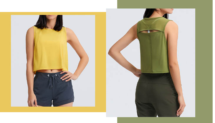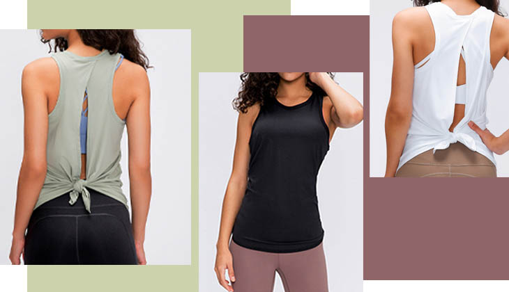 Un detalle de tira trasera muestra más especial en la camiseta sin mangas simplae. Se vería genial con un par de pantalones o shorts de yoga y tus encantadores accesorios activos.
