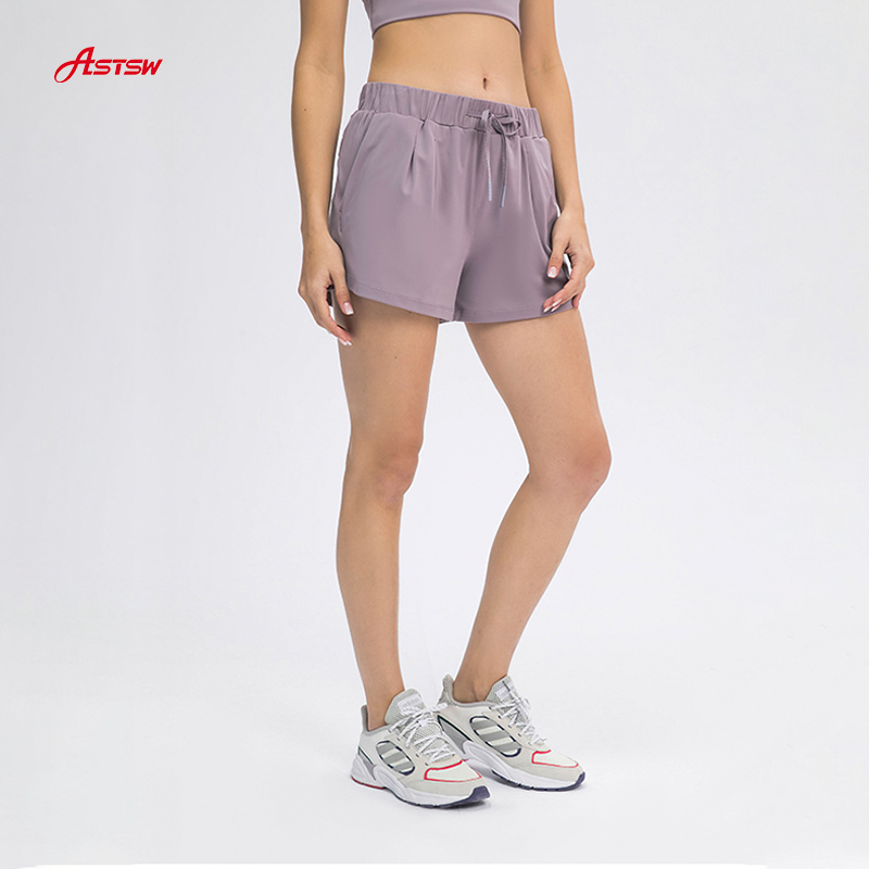 Pantalones cortos de mujer de cintura alta de color sólido transpirable