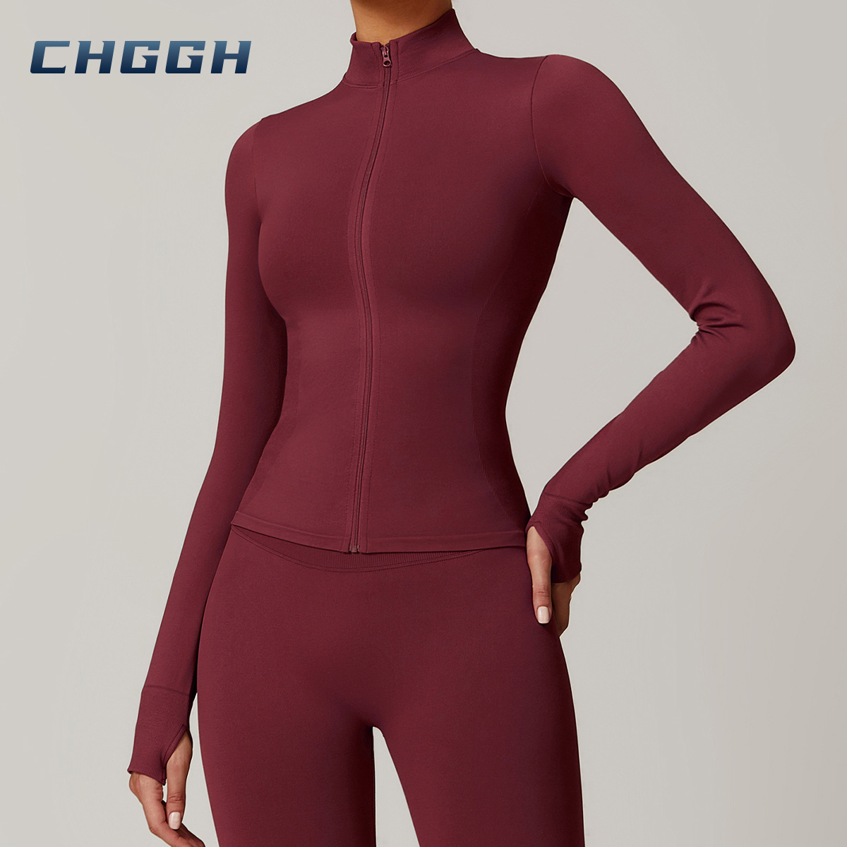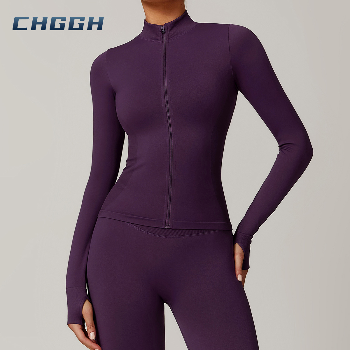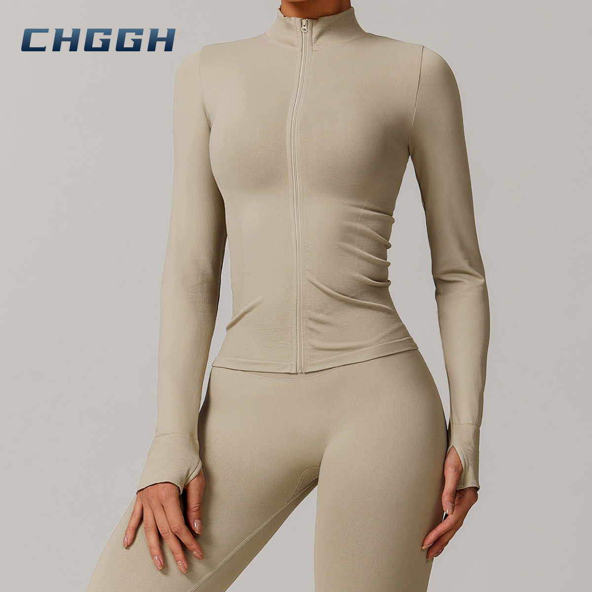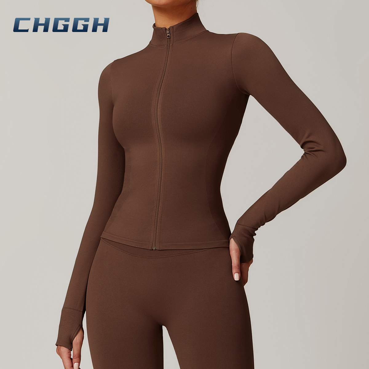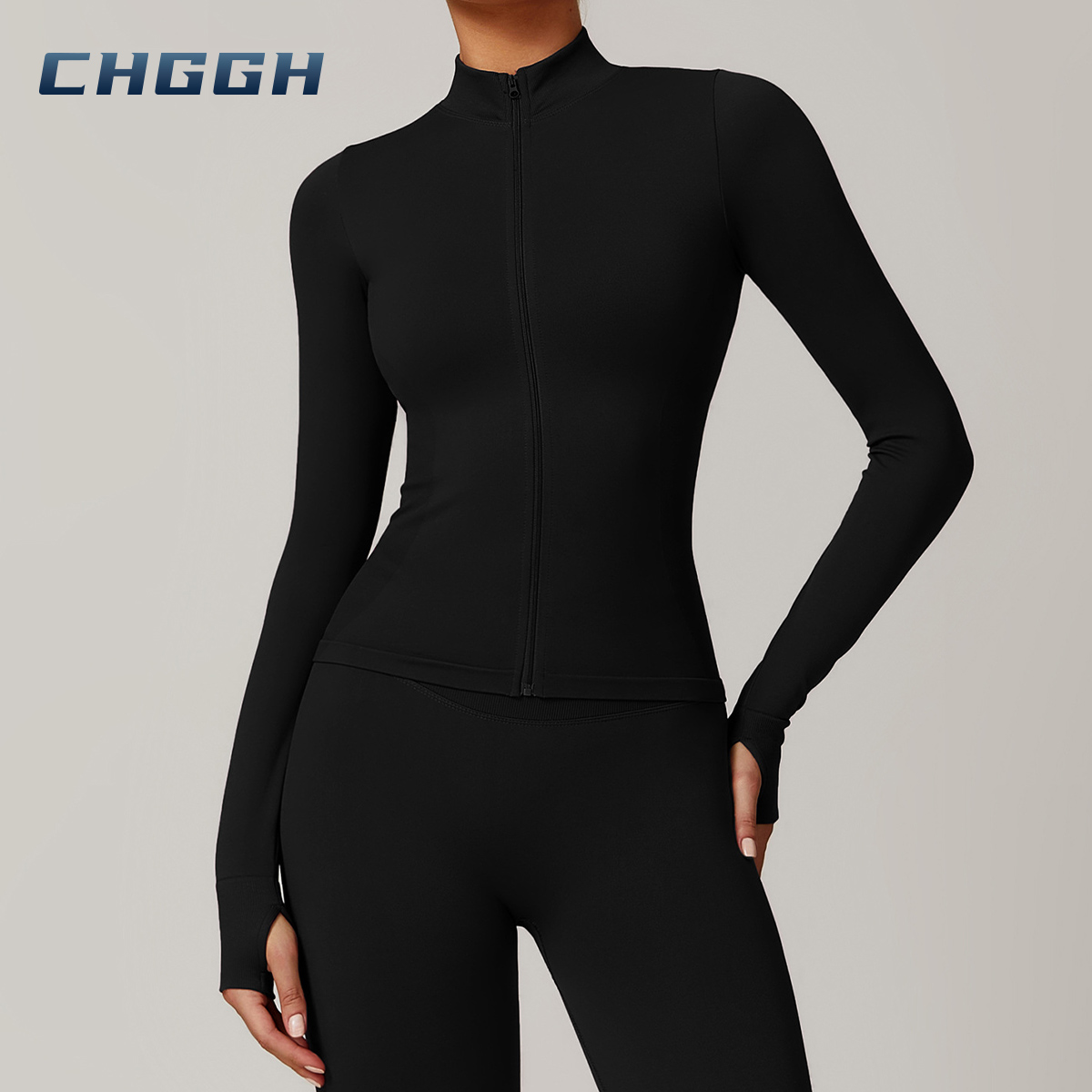 Nuevo top y leggings sin costuras de manga larga con media cremallera, la parte superior con cremallera resalta la plenitud del pecho.