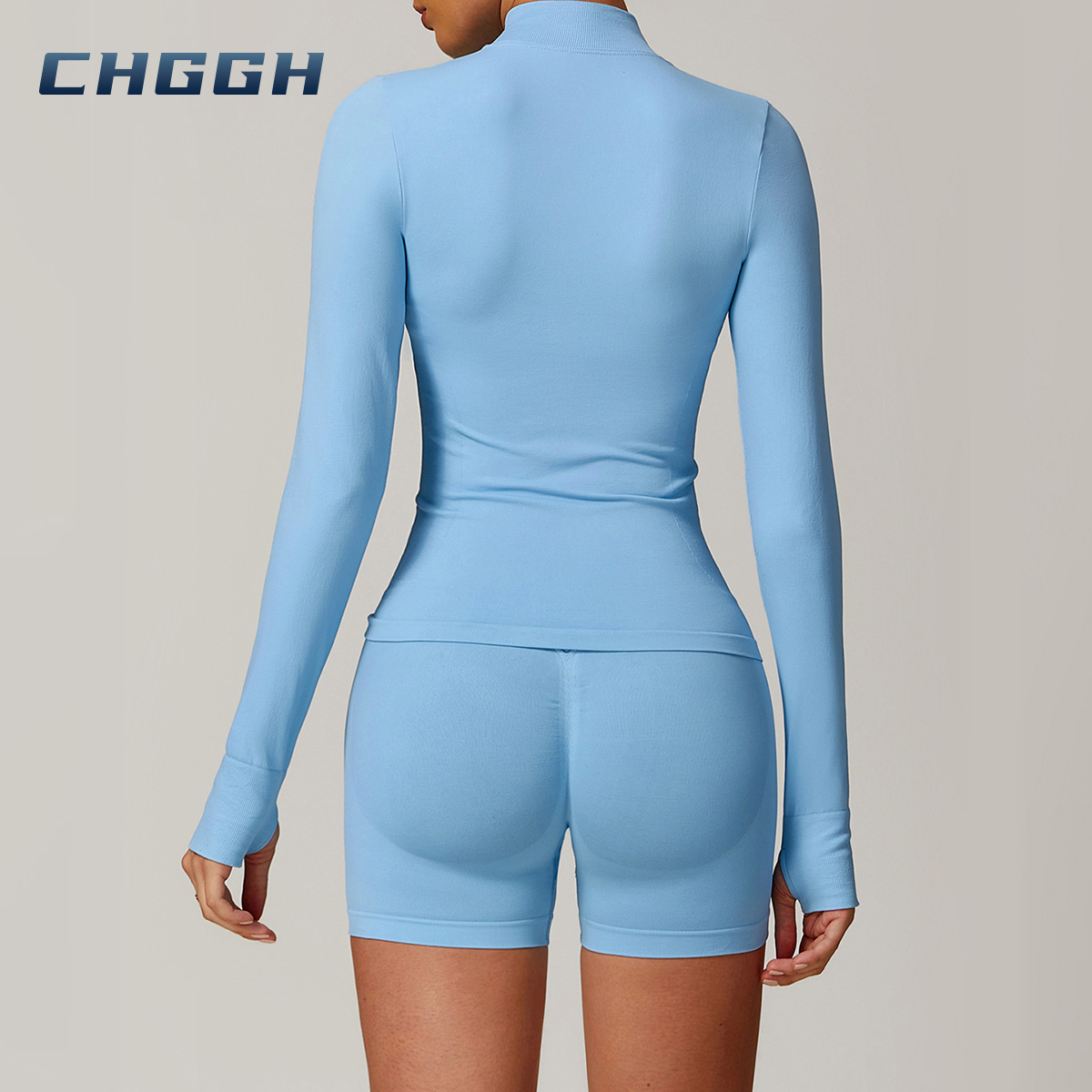 Tops y pantalones cortos de manga larga con cremallera sin costuras para mujer